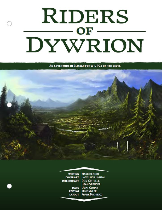 West of Caer Balloch is a region of rolling hills known as the Dywrion. From those lands come the Riders of Dywrion, a famous adventuring society that rose to meteoric fame a few decades before and now has more than two dozen active members. The Bold Blade Inn, run by Jalek the Bold, acts as their de facto headquarters, and their figures of greatest renown—a quartet of semi-retired founders—can usually be found there. Yet there is treachery afoot in this hallowed hall! A murderer is on the loose, the adventurers are drawn into the investigation, and the body count rises as they close in on the killer. Diabolically designed for 4–5 PCs of 9th level.